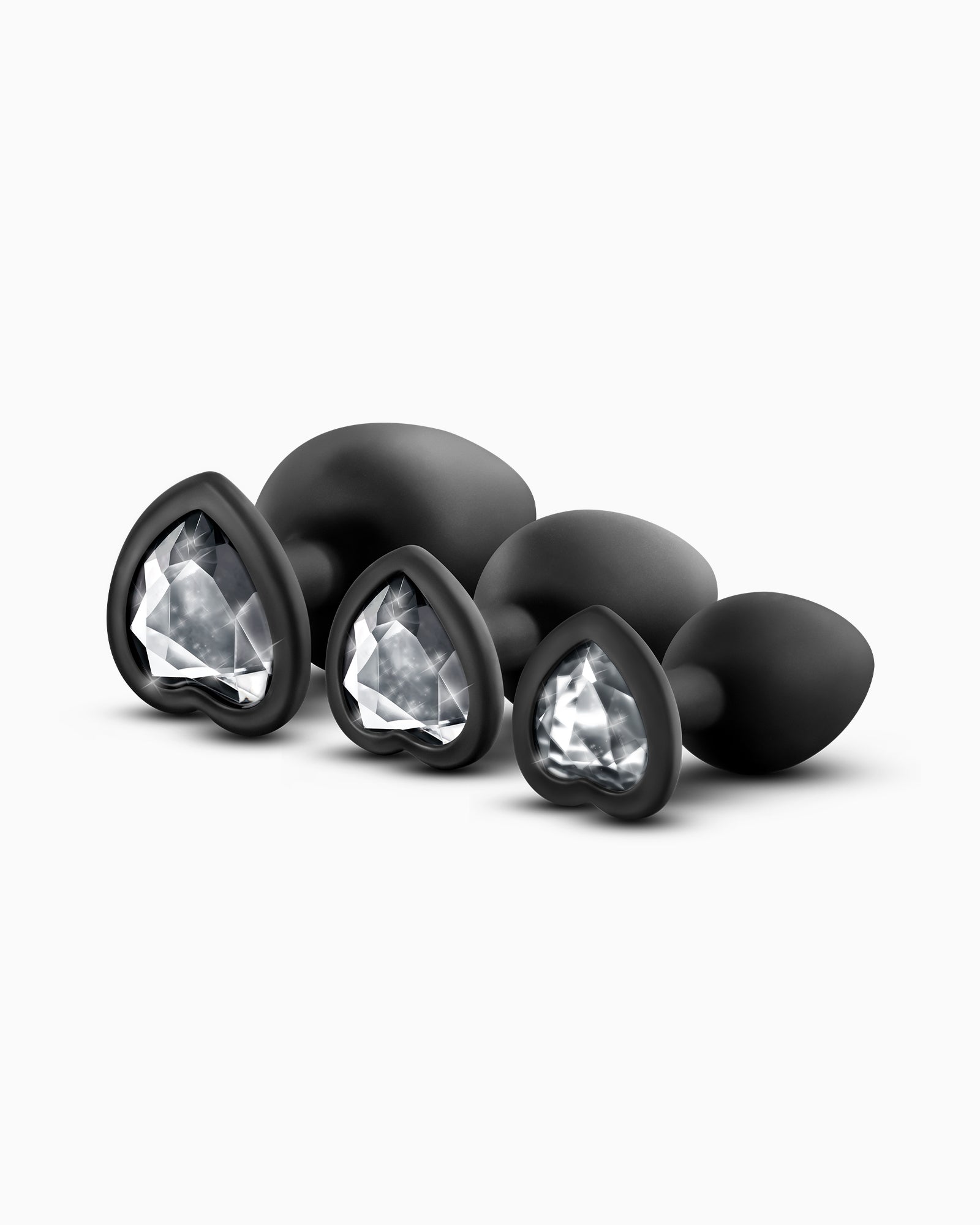 Each plug in the kit features a tapered tip, making insertion easy and comfortable. The tight neck provides gentle pressure and allows for extended wear, ensuring the plug stays securely in place. The heart-shaped base adorned with a stunning faux gemstone adds a touch of elegance and visual appeal, making your training sessions both pleasurable and aesthetically pleasing.
